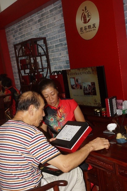 在茶艺区我司员工以热诚的态度迎接到场的每一位客人并展示了邑葵陈皮柑普茶的正确泡茶技巧,让客人品尝到邑葵柑普茶特有醇香。